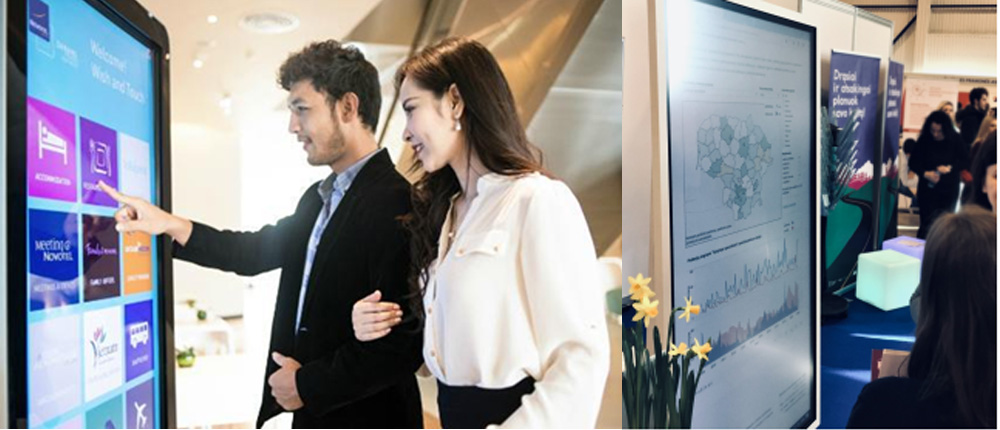 - Didieji ekranai: Interaktyvūs TV ekranai, liečiamieji stendai (kioskai) ir vaizdo sienos.